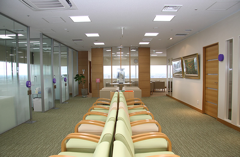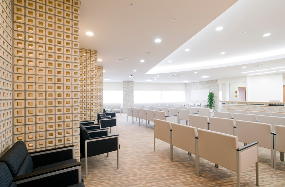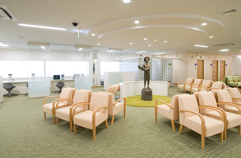 一般外来の患者様からドック健診の受診者まで1日平均200人超の方々にスムーズに受診していただくための適切な配置、そして優しさと落ち着きのある洗練された空間デザインとなっています。